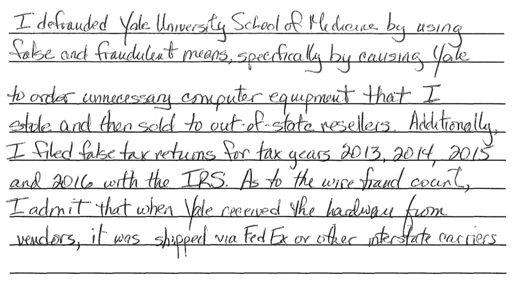 A former Yale School of Medicine administrator this week pleaded guilty to charges that over a nine-year period, she stole computers and other electronic devices that totaled to $40 million in losses for the university — money she used to buy cars, real estate and vacations.